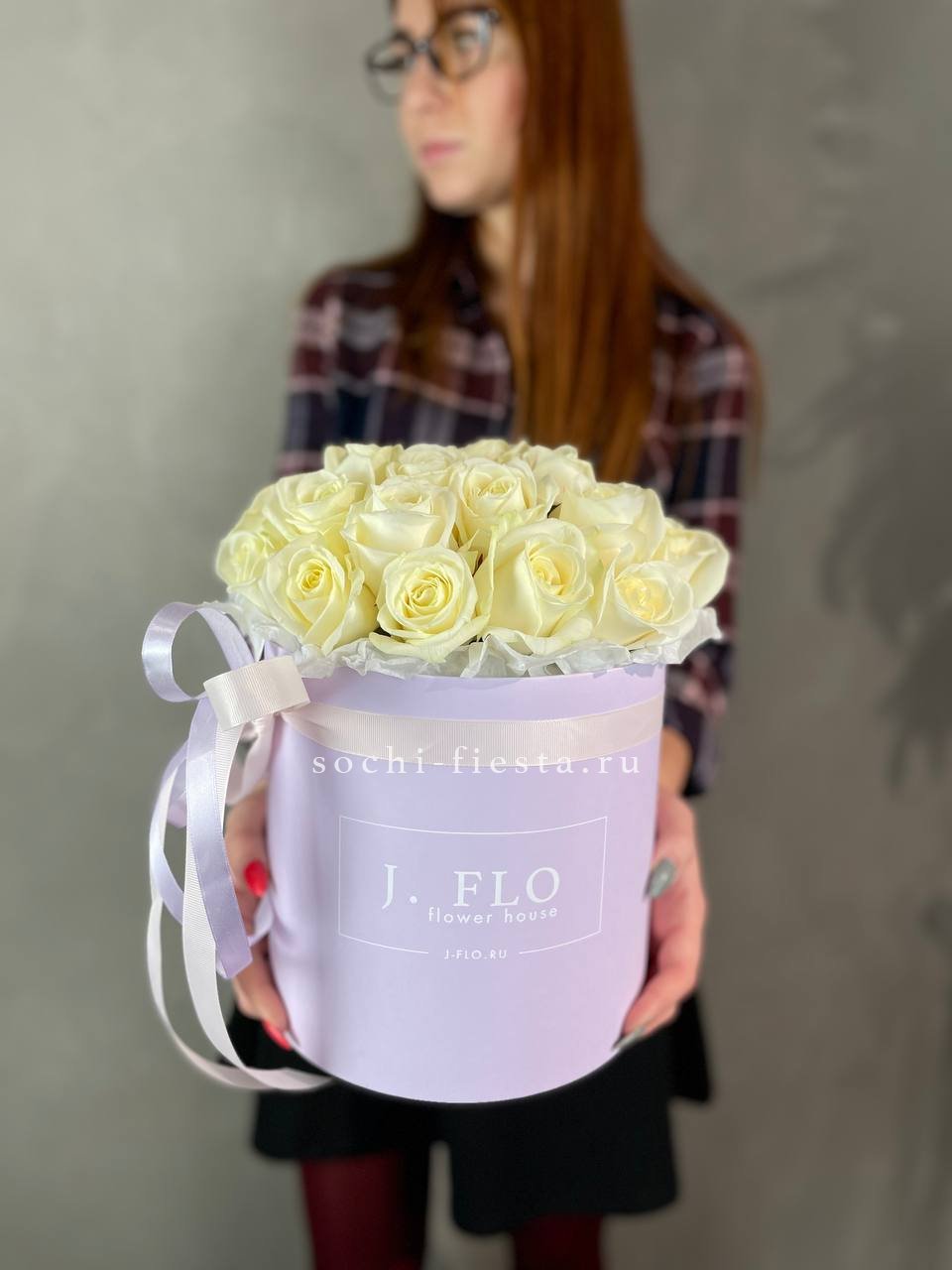 Сто одна белоснежная роза из Кении собрана в монохромную композицию с безупречной геометрией. Каждый бутон держит форму и создаёт плотное облако света. Для момента когда слова не нужны.