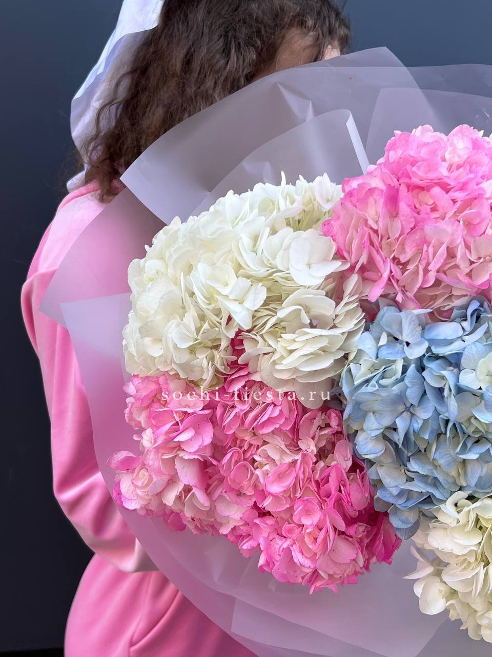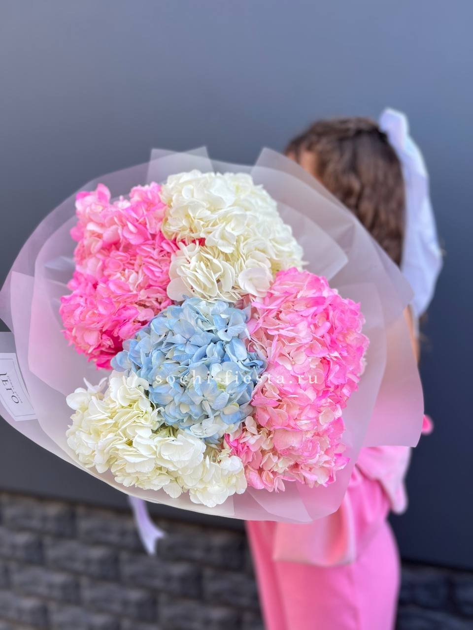 гортензия - 5 шт., лента, дизайнерская упаковка.