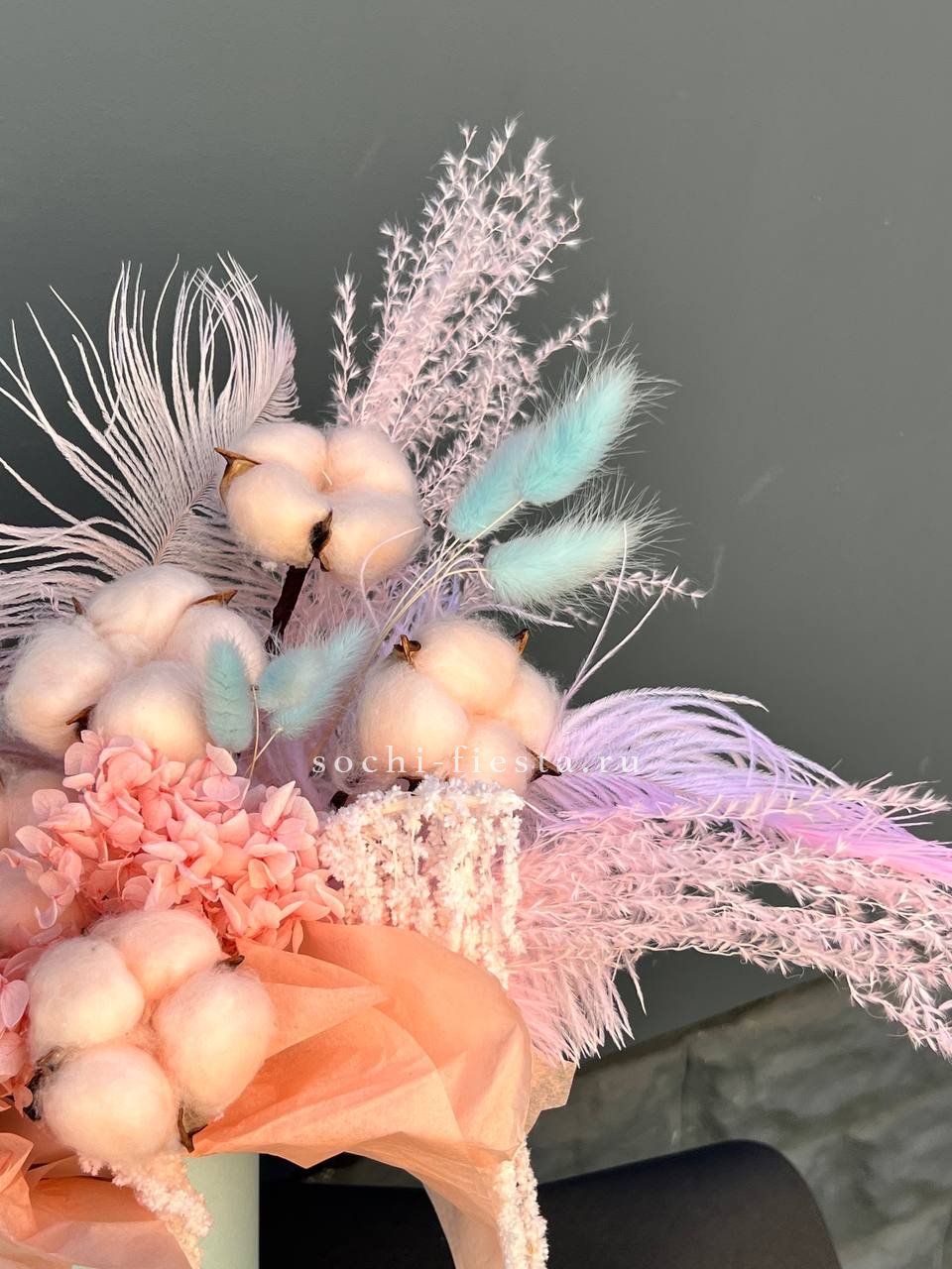 хлопок, лагурус, амарант, перья, аспарагус, цилиндр D13.