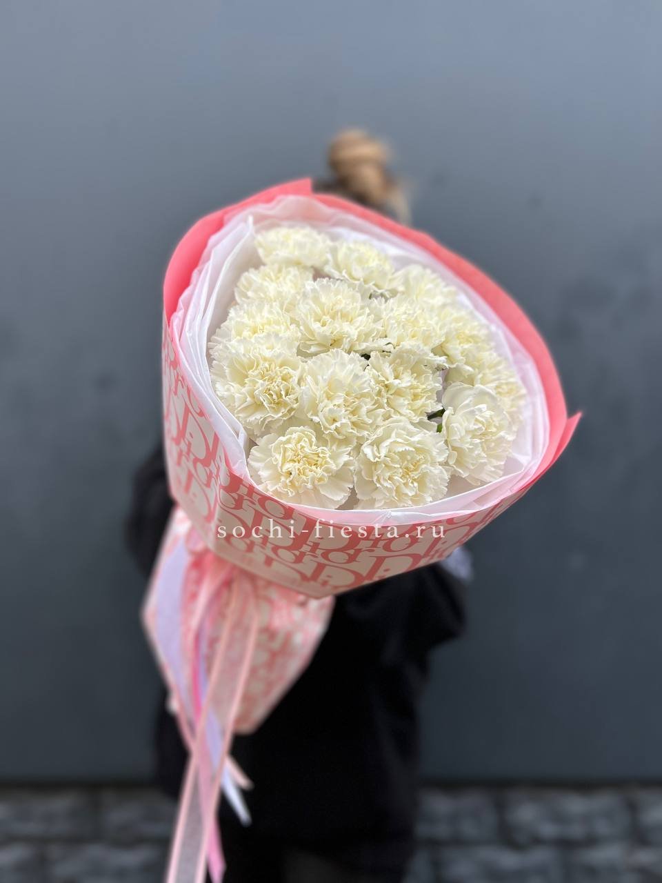 диантус - 21 шт., лента, крафт или дизайнерская пленка.