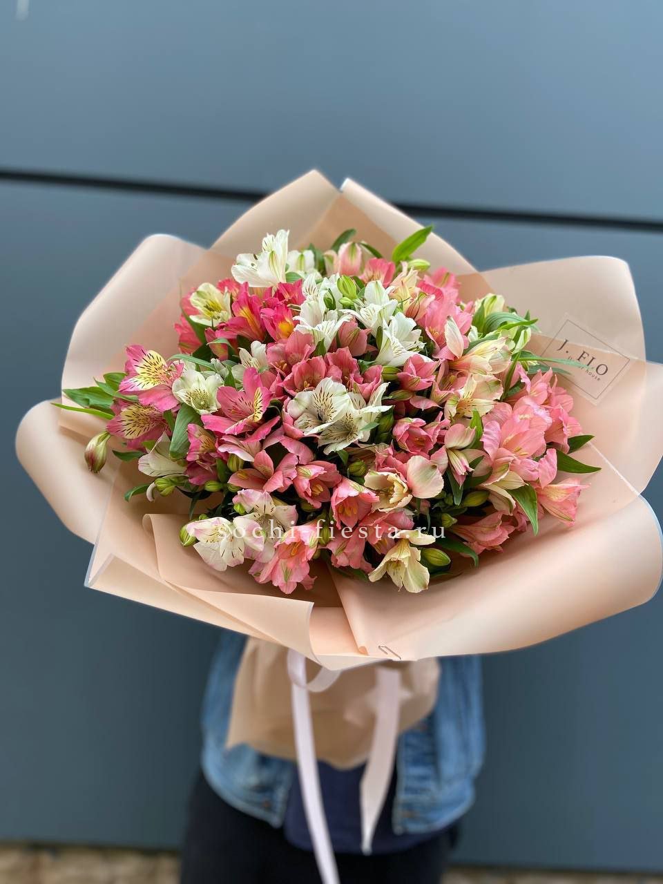 альстромерия - 51 шт., лента, дизайнерская упаковка.