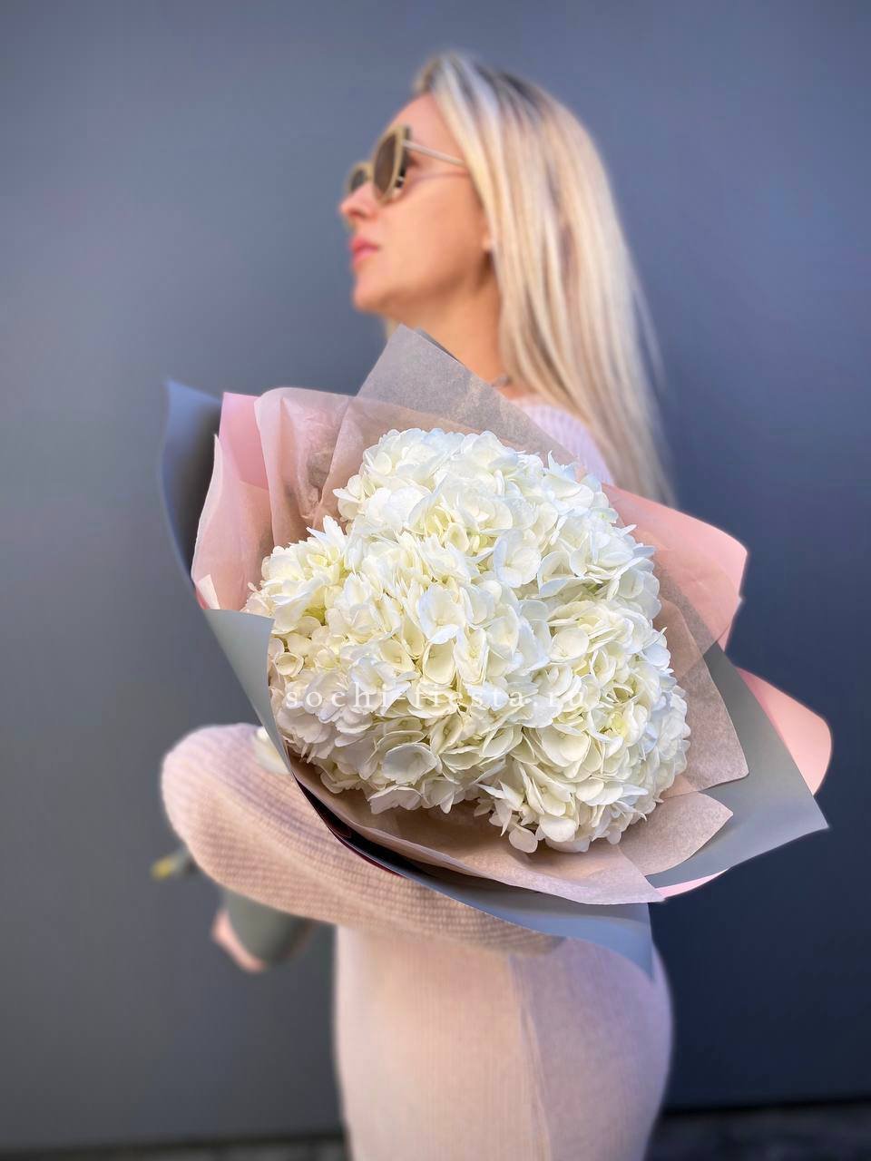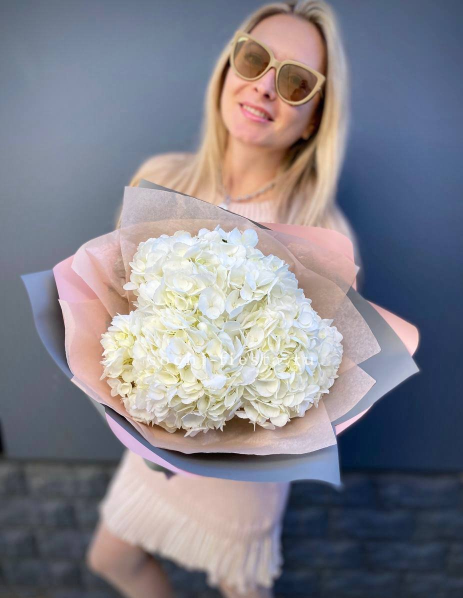Для заказа товара "Букет из трёх белых гортензий" с доставкой в Королёве нажмите в корзину