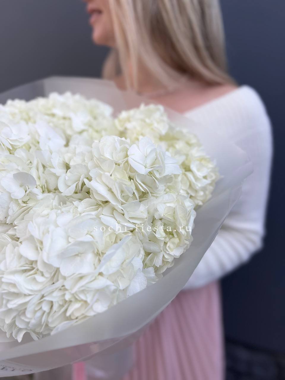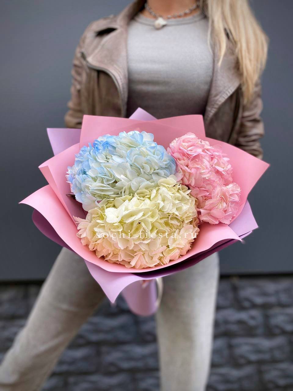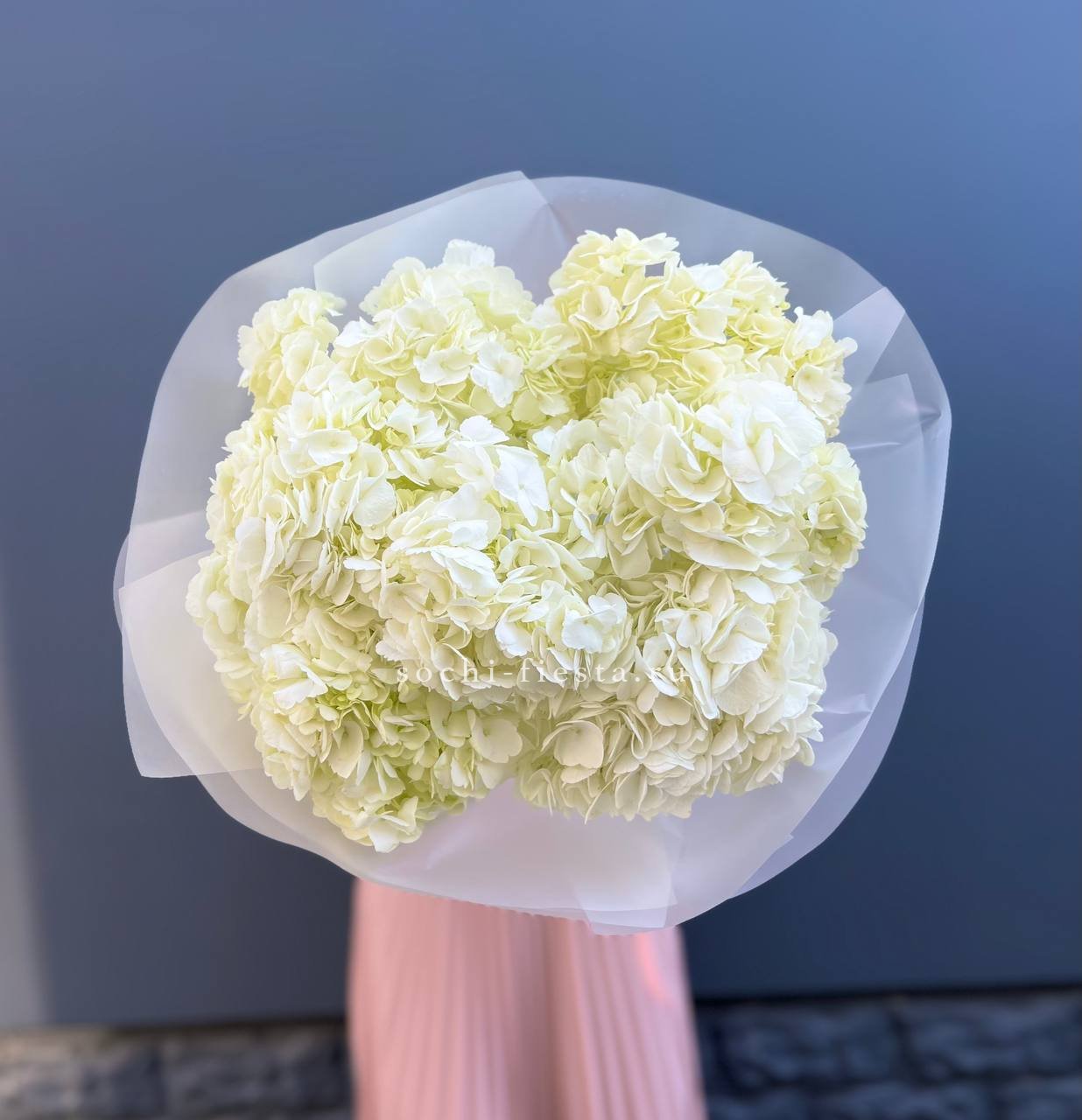 гортензия, лента, дизайнерская упаковка. Цвет гортензии на выбор