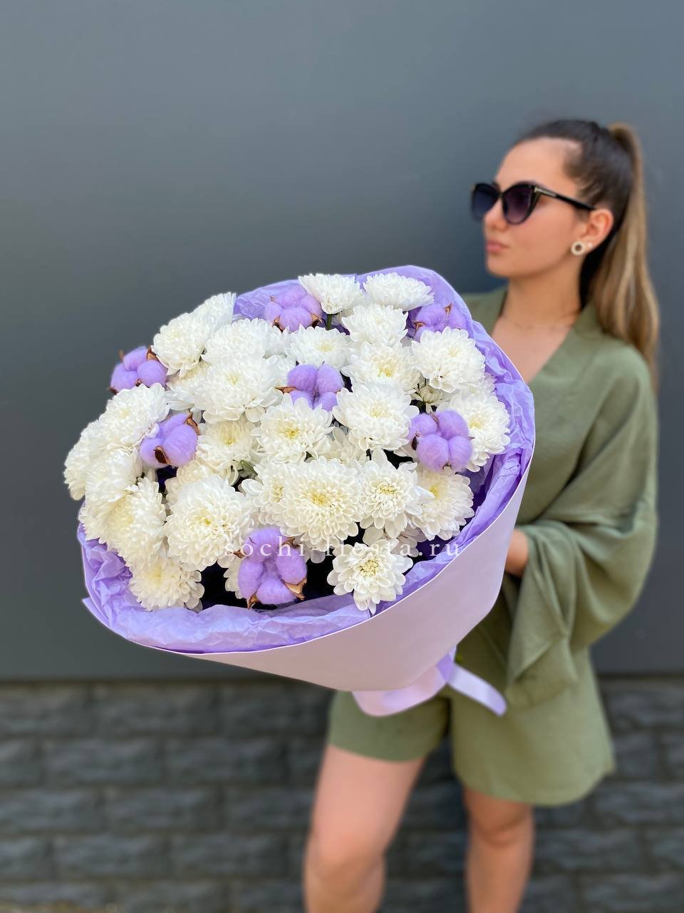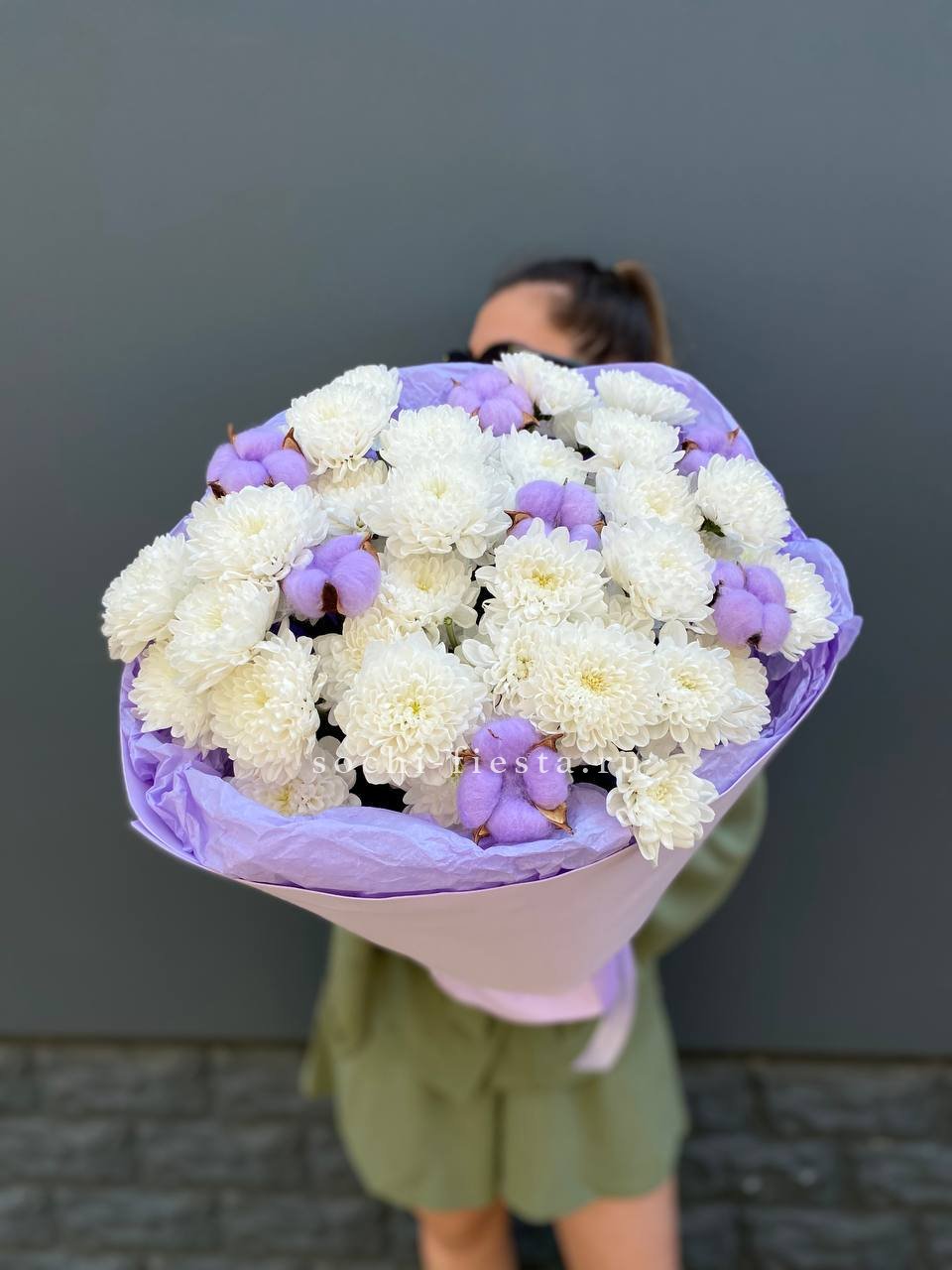 Для заказа товара " Букет хризантем и хлопка" с доставкой в Королёве нажмите в корзину