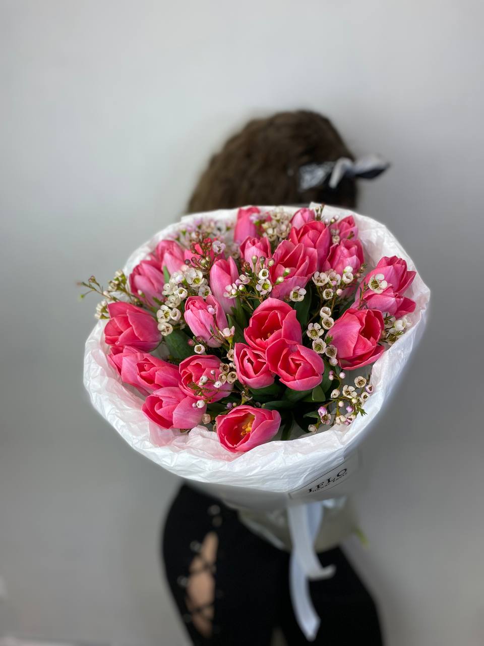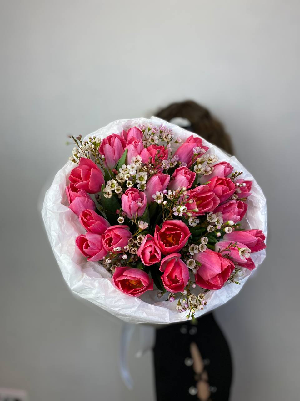 Мы работаем только со свежими цветами — букеты радуют от 7 до 14 дней и дольше при правильном уходе.