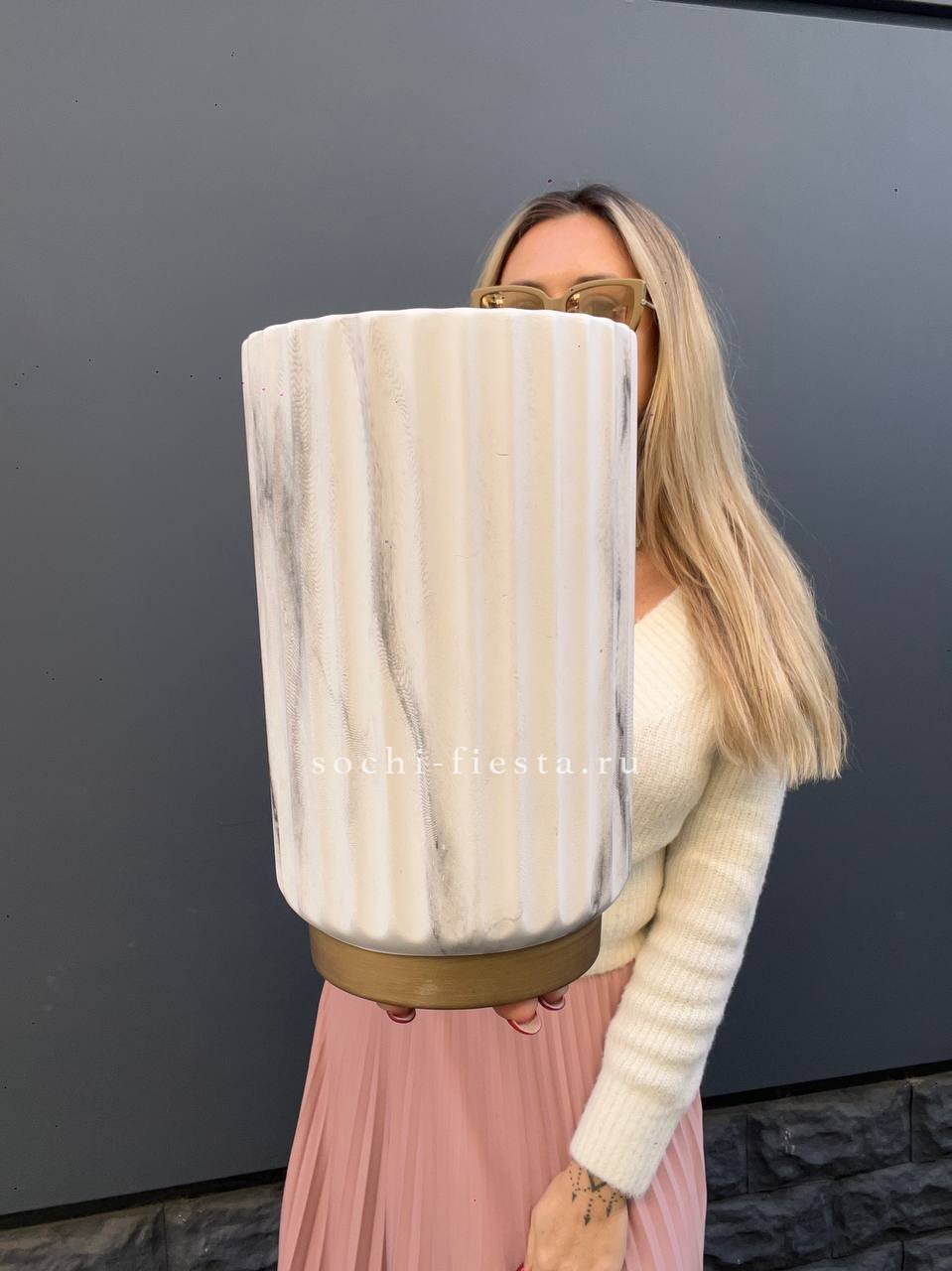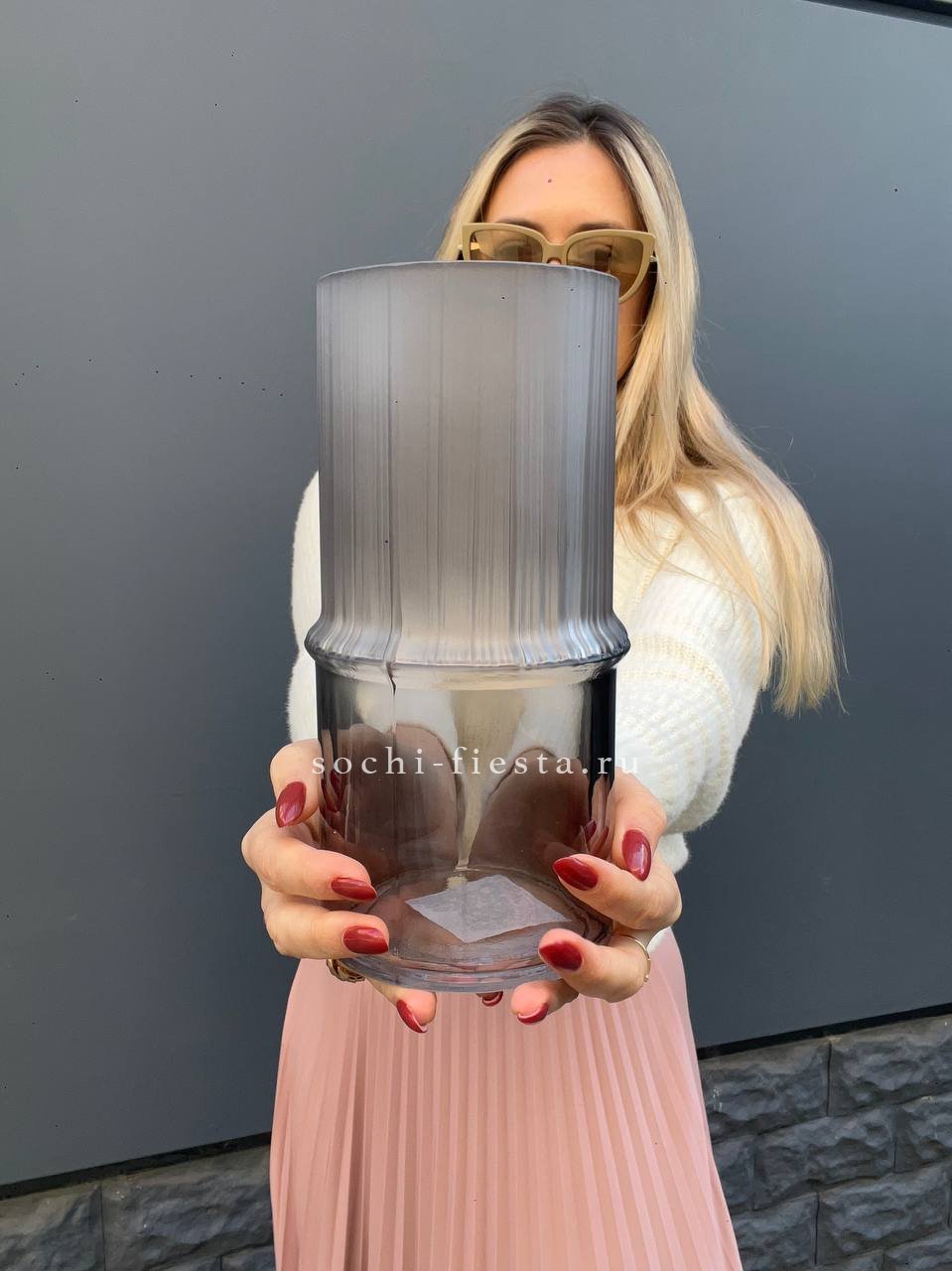 Комбинированное стекло создаёт игру прозрачности и матовости. Универсальная форма подходит для свежих букетов и сухоцветов. Объёмная модель занимает своё место в интерьере.