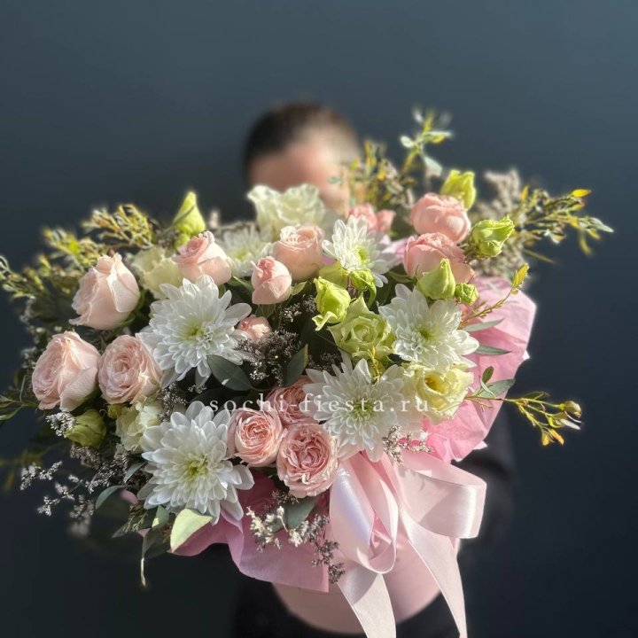 Размер выбирается по повод. Коллеге в Королёве — M или L. Юбилей родителей — XL. Выписка из роддома — L в пудровой палитре. Свадебный подарок — XL. 1 сентября — M или L в классической палитре.