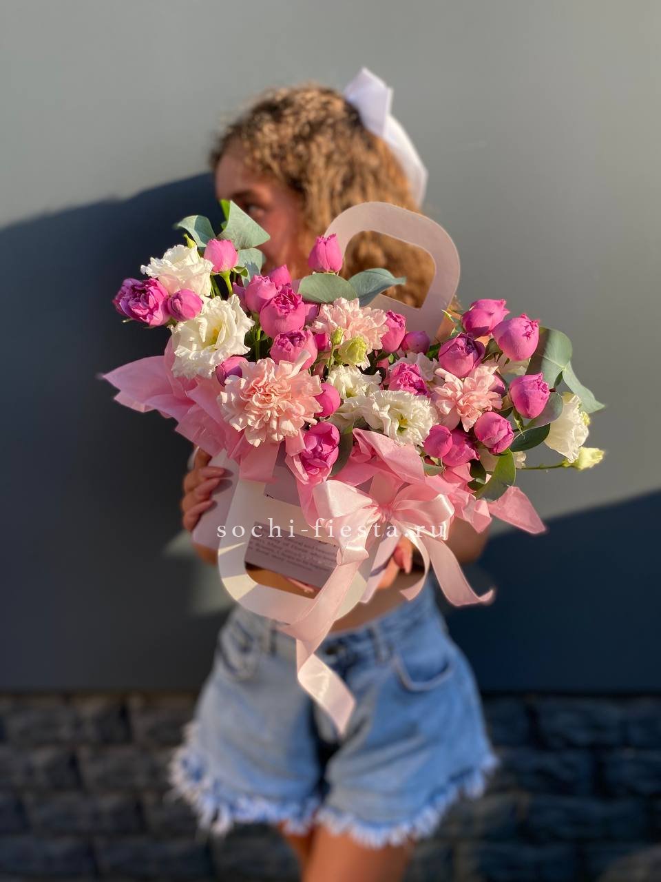 Для заказа товара "Сумочка с кустовой розой и диантусами" с доставкой в Королёве нажмите в корзину