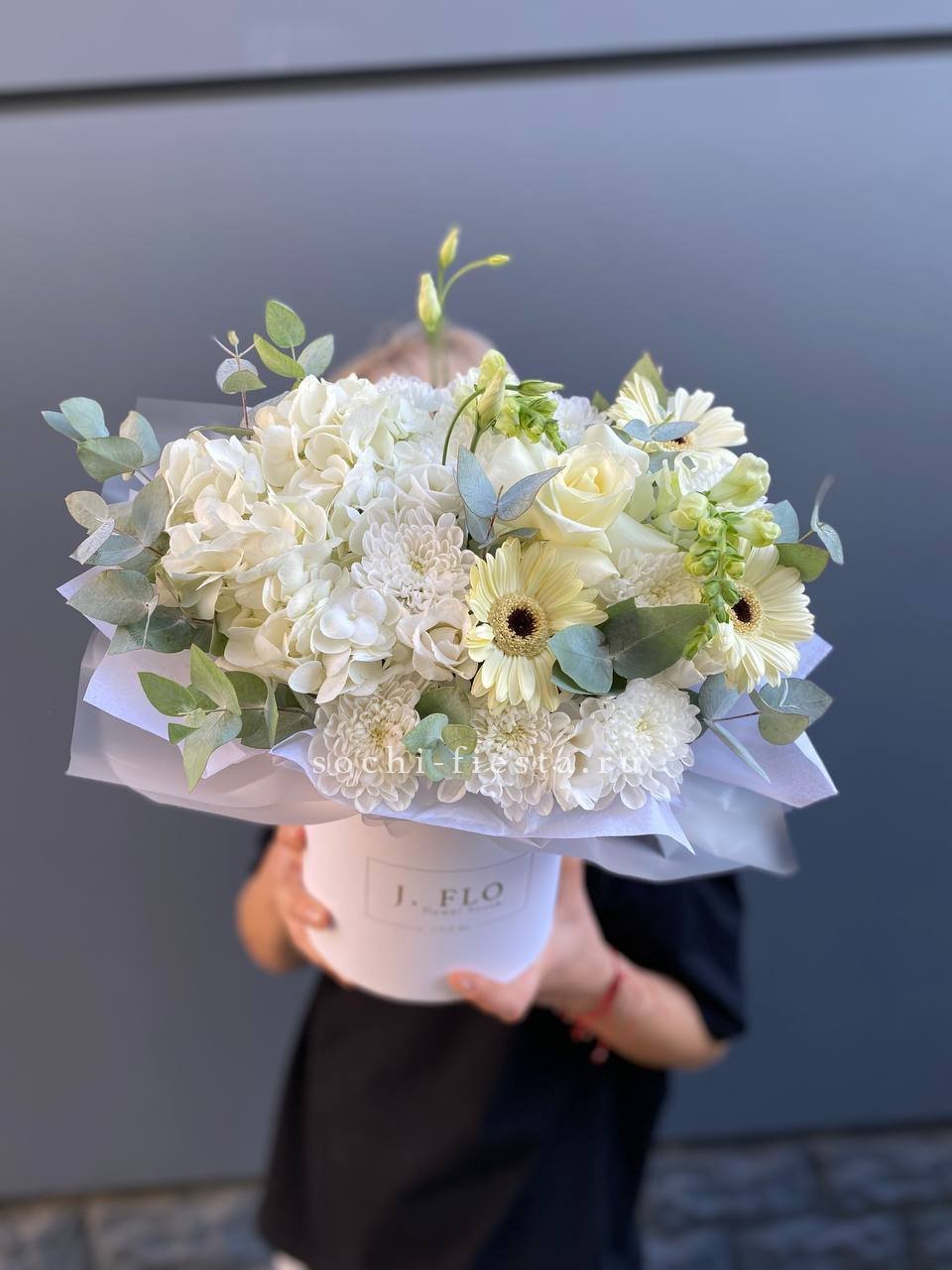 гортензия, роза, гербера, хризантема, эустома, антиринум, бокс 16.
