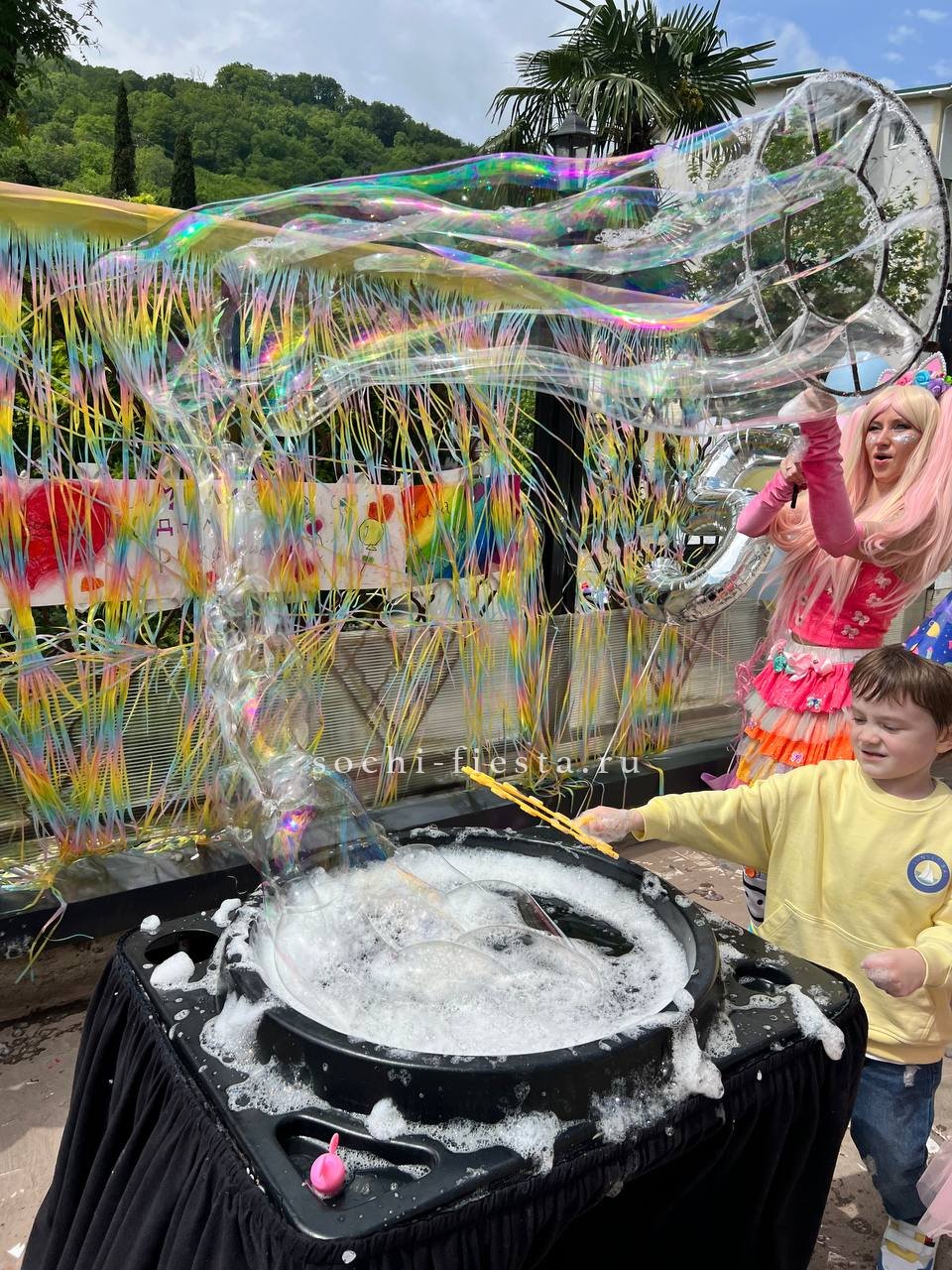 Шоу мыльных пузырей — яркое и захватывающее представление, в котором мастер создает огромные, разноцветные и необычные мыльные пузыри разного размера. В программе используются специальные техники и инструменты для формирования фантастических фигур, пузырей-гигантов и эффектных трюков. Это зрелищное шоу радует зрителей своей красотой, магией и атмосферой веселья, особенно популярное среди детей и семей.