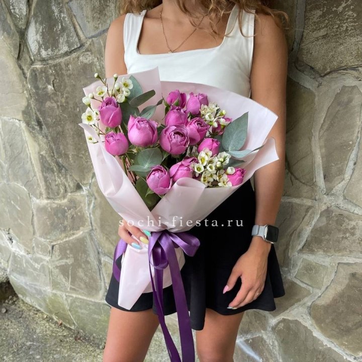 Двухцветные и жёлтые сорта иногда доступны под предзаказ. Пионовидные розы — под свадьбы и никахи, с предзаказом за 7-10 дней. Кустовые — в авторских работах, реже в моно-букетах.