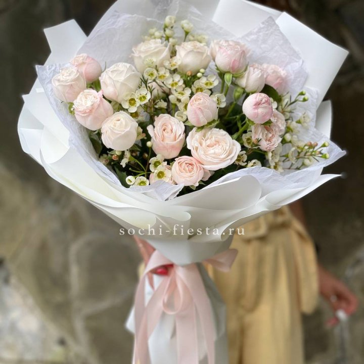 Для свадеб и крупных поводов предоплата закупки необходима. Флорист заказывает сорта под дату, часто с запасом больше обычного из-за региональной логистики. Сроки 7-10 дней до сборки для среднего формата.