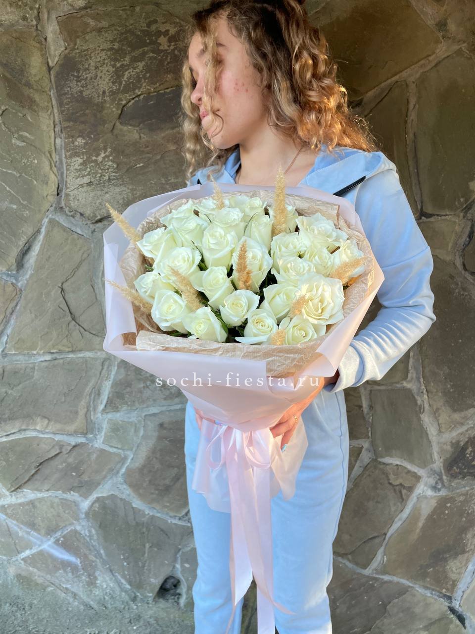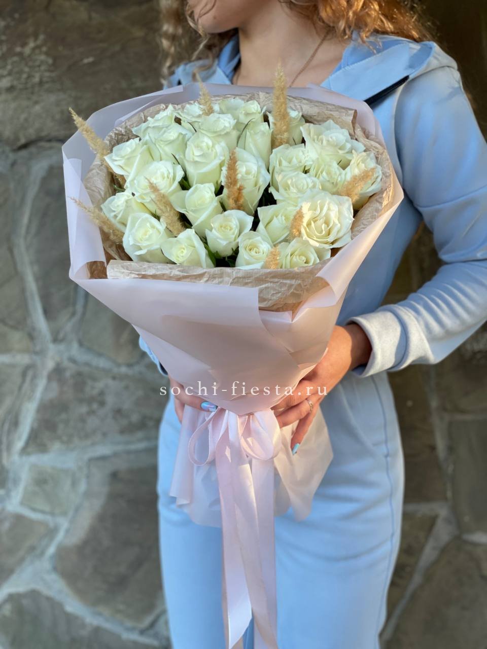 Для заказа товара "25 Белых французских роз "Ноте бьянка"" с доставкой в Королёве нажмите в корзину