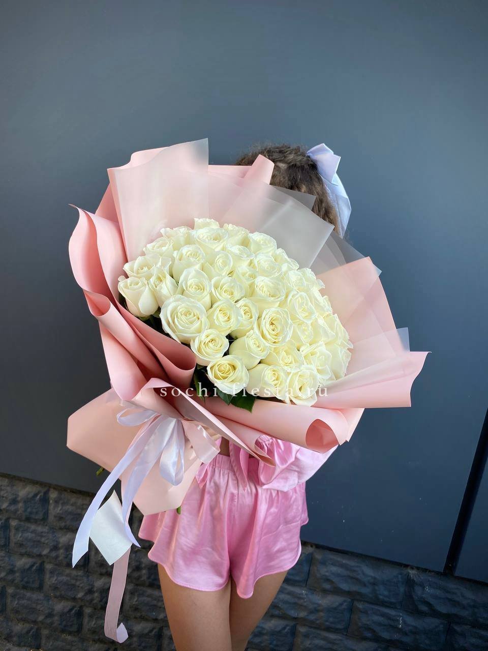 белые розы 35 шт., лента, упаковка на выборВы можете выбрать любое количество.