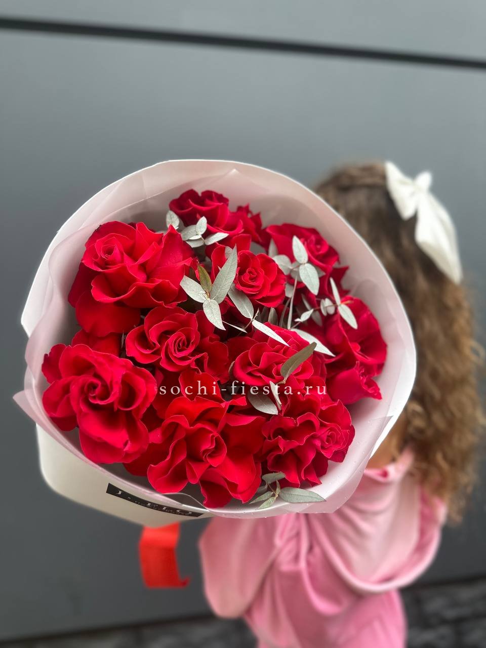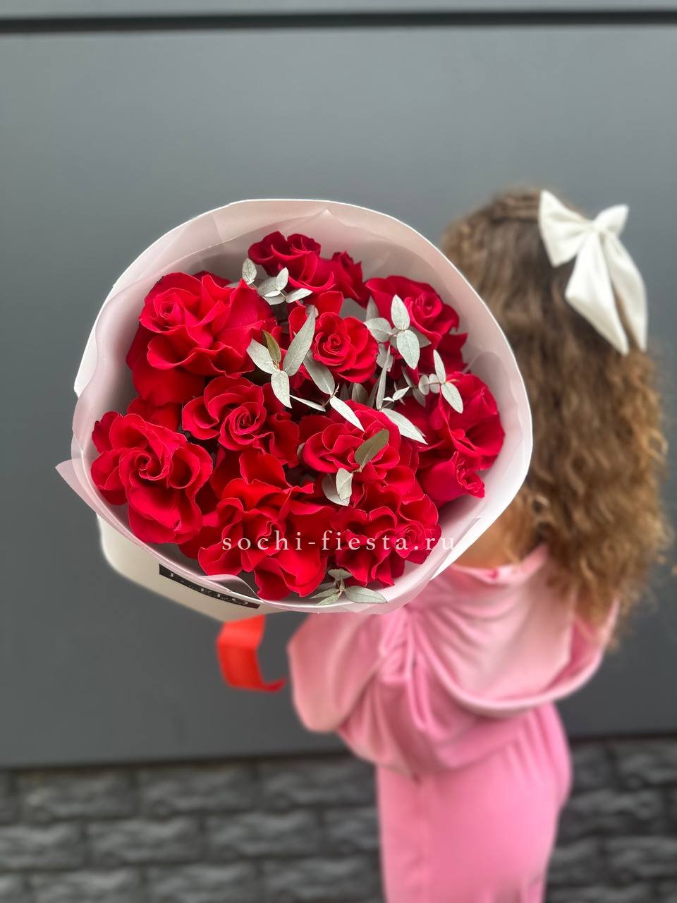 алые розы, количество на выбор, лента, авторская упаковка.