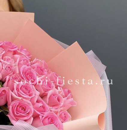 25 розовых роз., лента, дизайнерская упаковка.