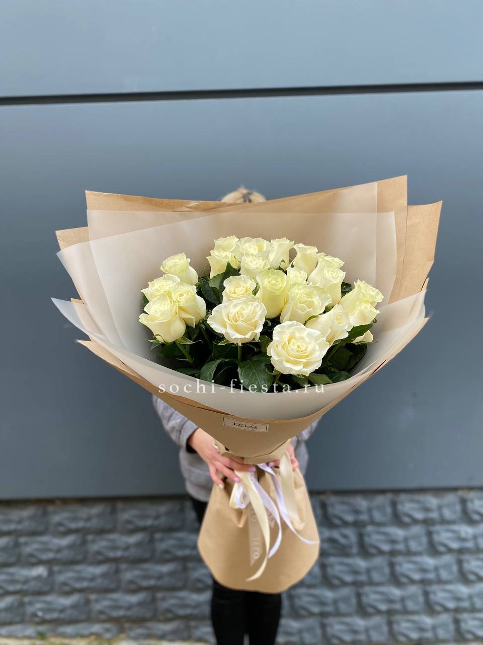 Для заказа товара " Букет высоких белых роз " с доставкой в Королёве нажмите в корзину