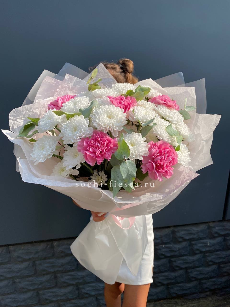 Для заказа товара " Букет хризантем и диантусов "Воздушный"" с доставкой в Королёве нажмите в корзину