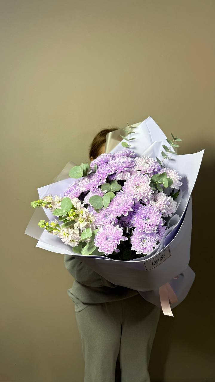 Хризантема Miranda раскрывается пышными соцветиями среди кустовых роз и альстромерий. Плотная структура и природная свежесть сохраняются долго. Композиция для тех, кто ценит надежность и натуральную красоту.