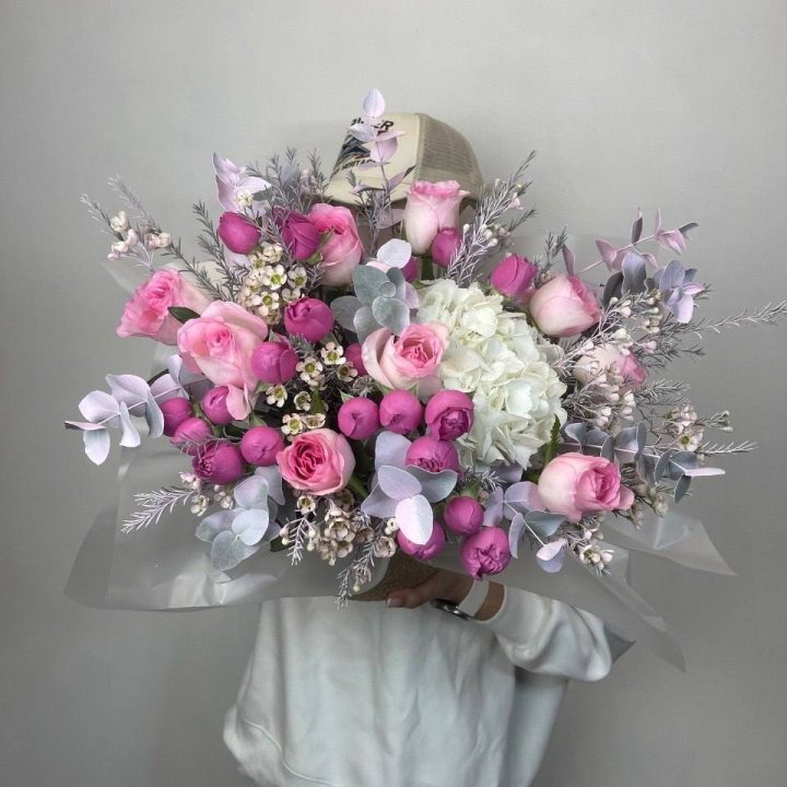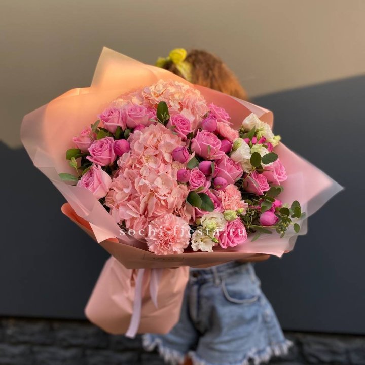 Летние семейные торжества, дни рождения, юбилеи — основной поток летних заказов. Флорист знает клиентов лично, часто предлагает сезонный акцент к знакомому формату: пионы к обычному розовому букету, гортензия к миксу с эвкалиптом.