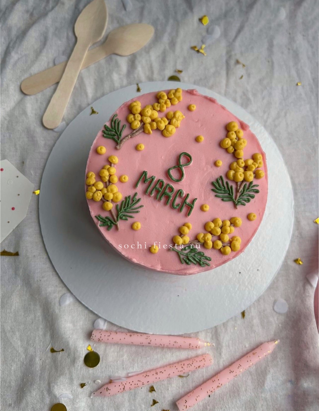 Миниатюрный торт с яркой надписью и домашним теплом в каждом слое. Крем держит форму, а бисквит остается влажным благодаря небольшому объему и свежести выпечки.
