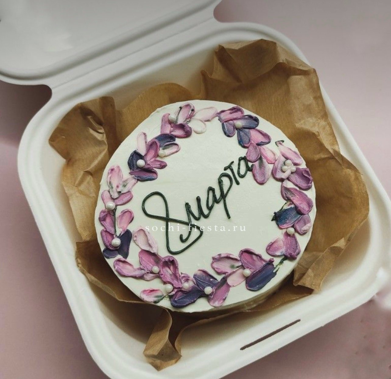 Сиреневый крем с россыпью шоколадных драже и волнистыми деталями создает игривое настроение. Два яруса с плавными линиями и яркими акцентами. Ручная работа с выбором вкуса.